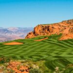 The Sand Hollow Resort venue, which is nestled in a visually stunning red rock bowl, is framed by nature’s own red sandstone formations, roofed by crystal blue desert sky, and cushioned with lush, emerald green lawn.