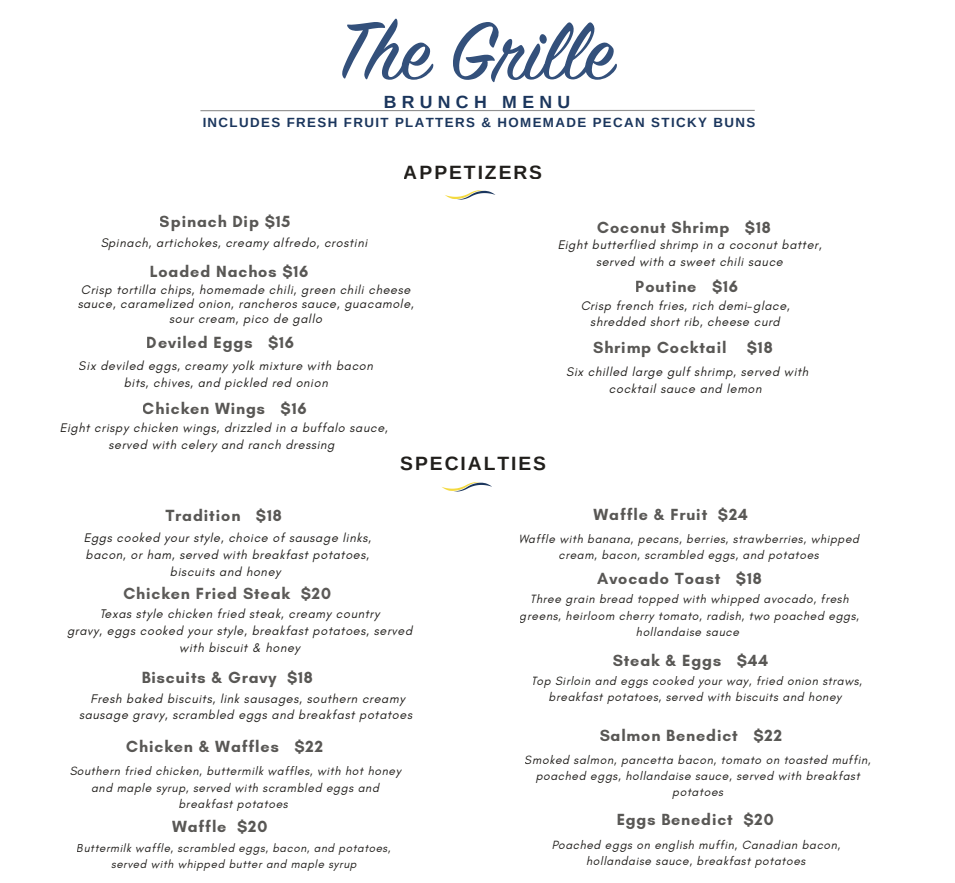We had a great dinner at The Grille. We felt the portions were good size for the price with lots of flavor. Our waitress was attentive and very kind with any questions we had. We will definitely be back in the future.